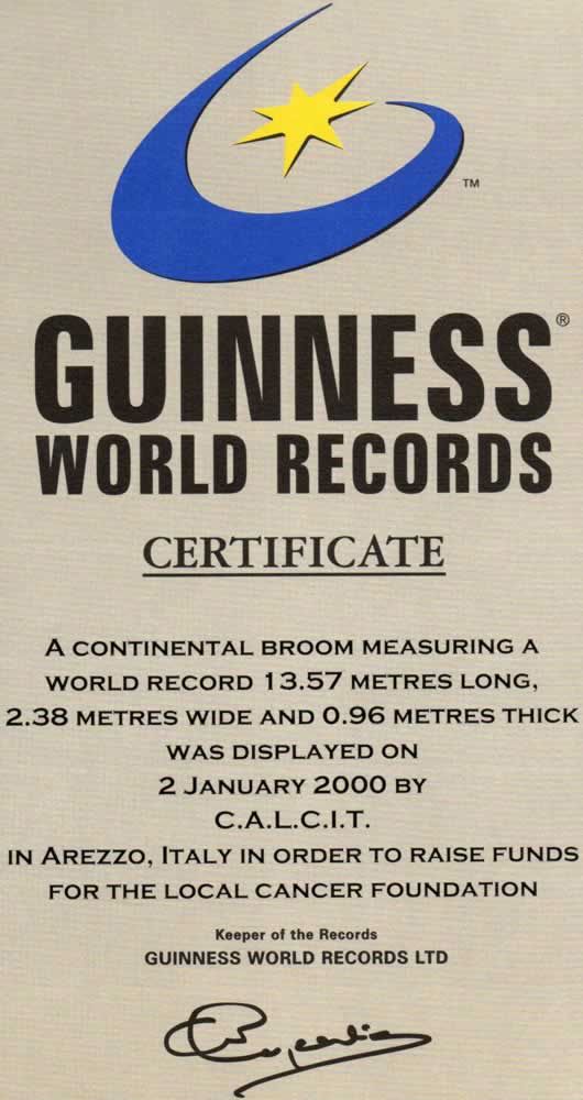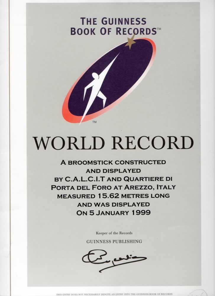 Gennaio 1999La scopa di erica più grande del mondo La scopa da stradino con manico di m. 8,40 e 15.62 metri di altezza